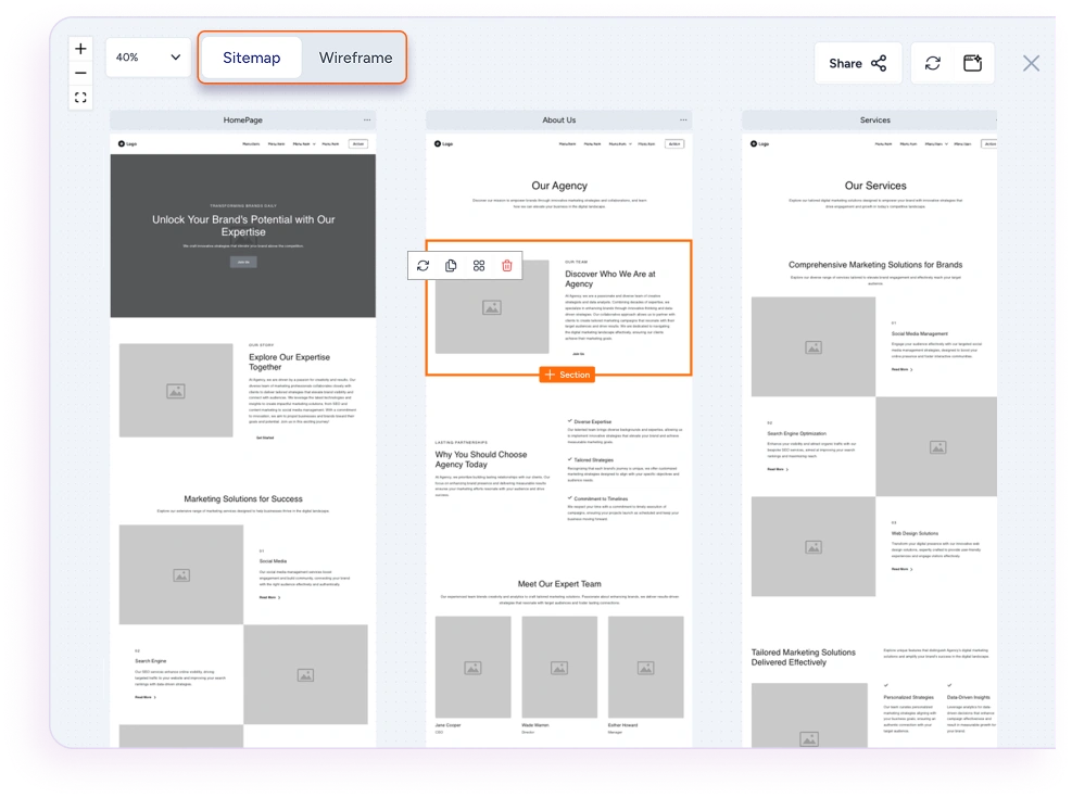 No more building everything from the ground up. ZipWP’s AI website builder creates a full WordPress website for you, with layout and content already matched to your business.