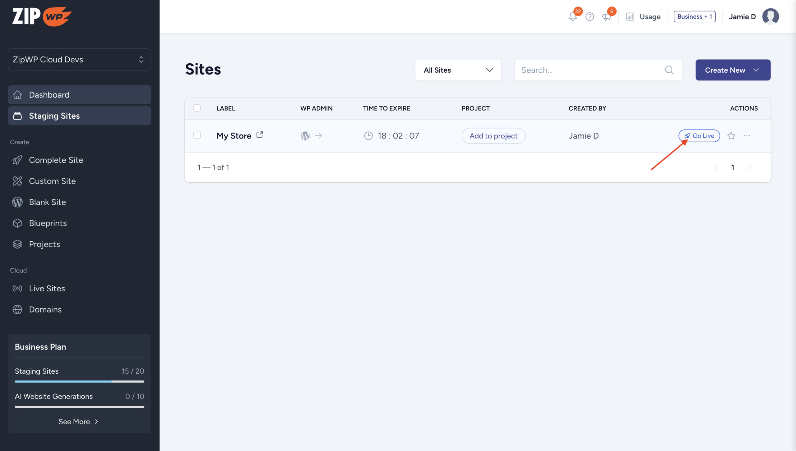 But once you’re ready to share your website with the world, you’ll need to move from staging → live hosting. That’s where ZipWP Cloud comes in.