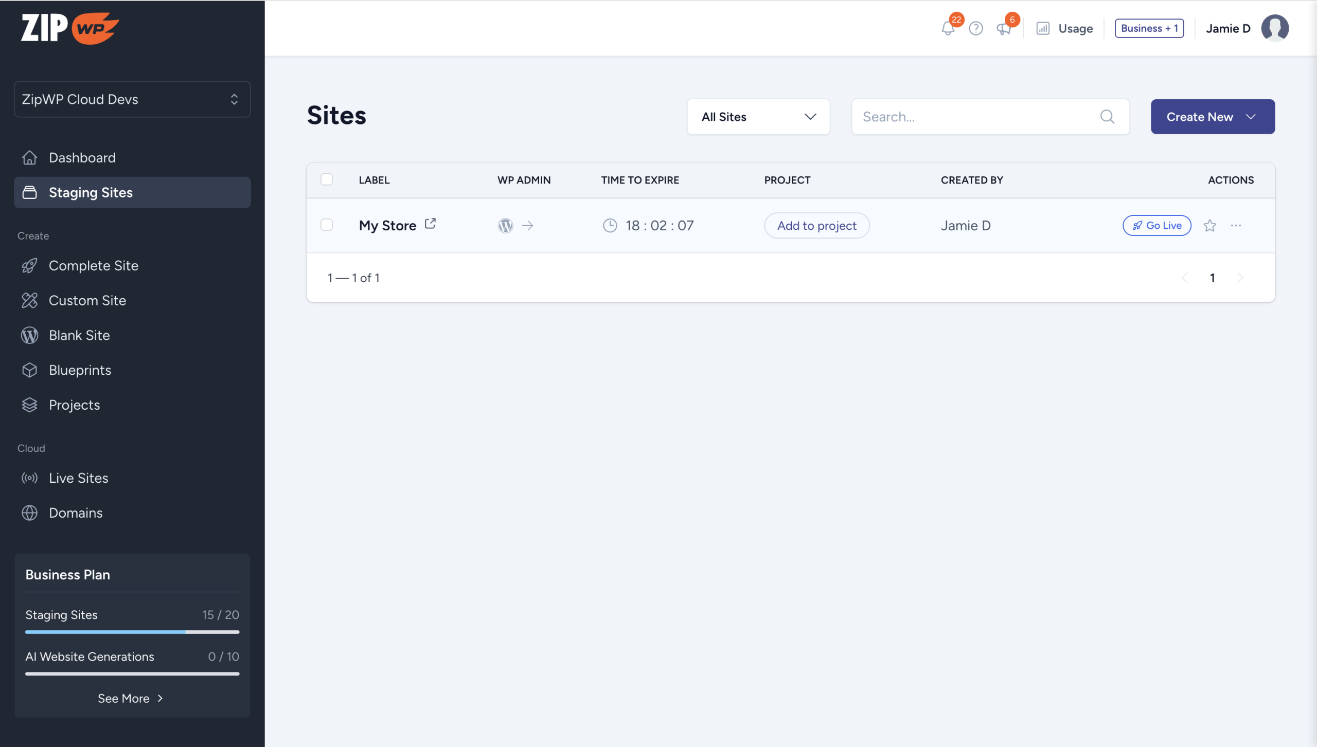 - Build your site on a ZipWP Staging Site (temporary environment) with AI or with your custom design.