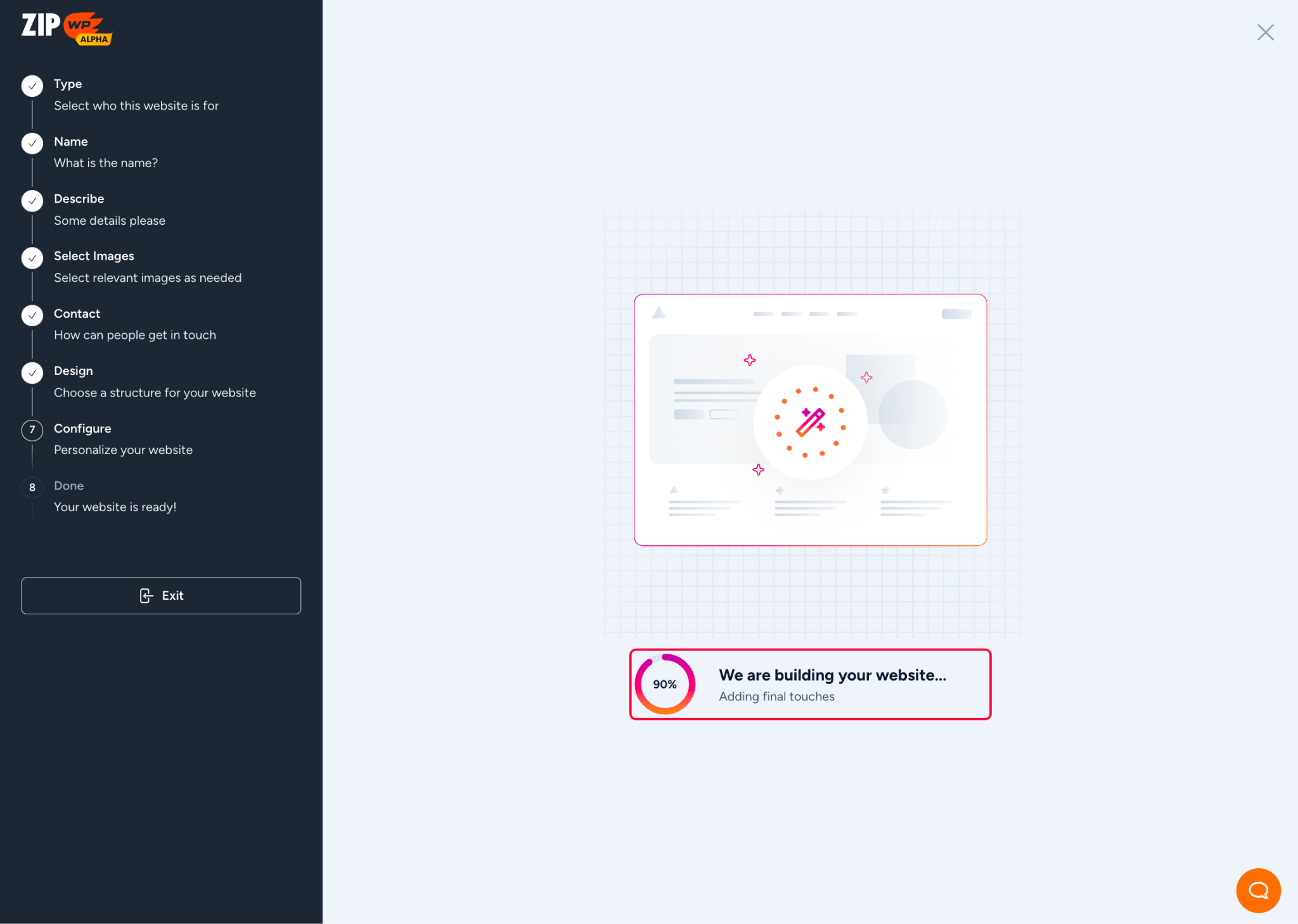 - Once the button is clicked, ZipWP will start creating the website for you.