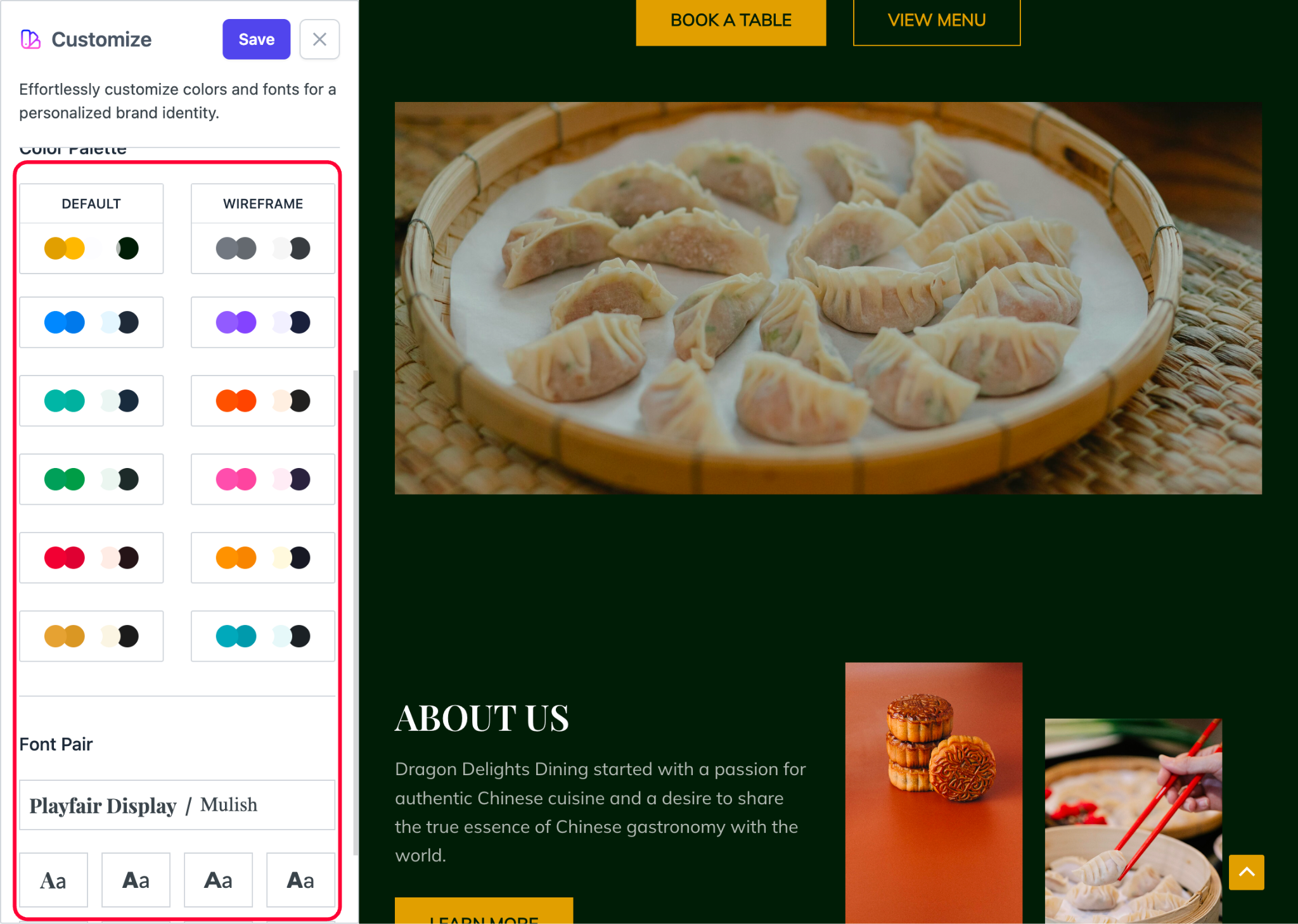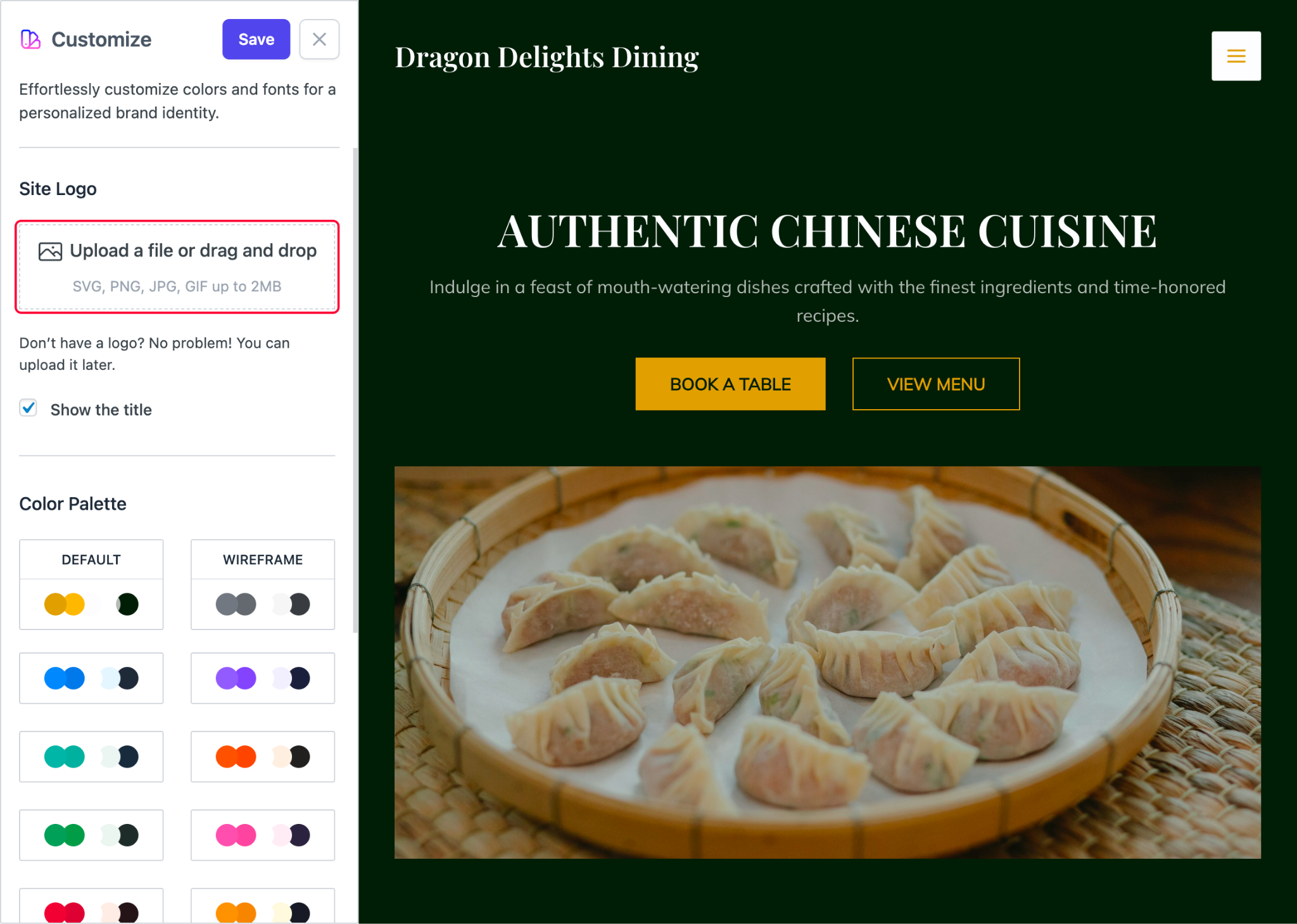 - Select a color palette and fonts for your website that would represent your website best.