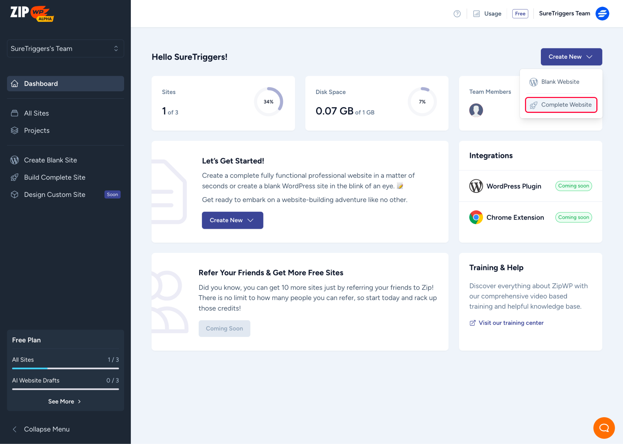 To create a complete website in your ZipWP account, simply follow these steps.